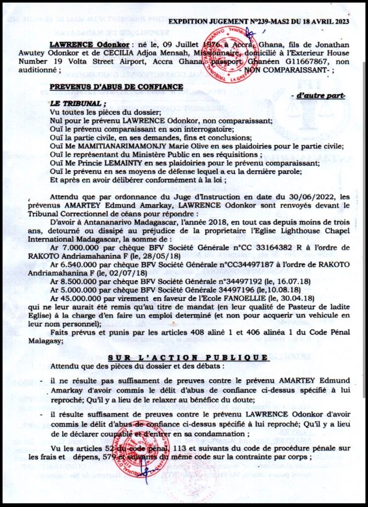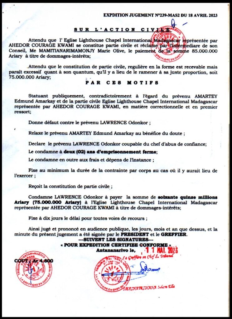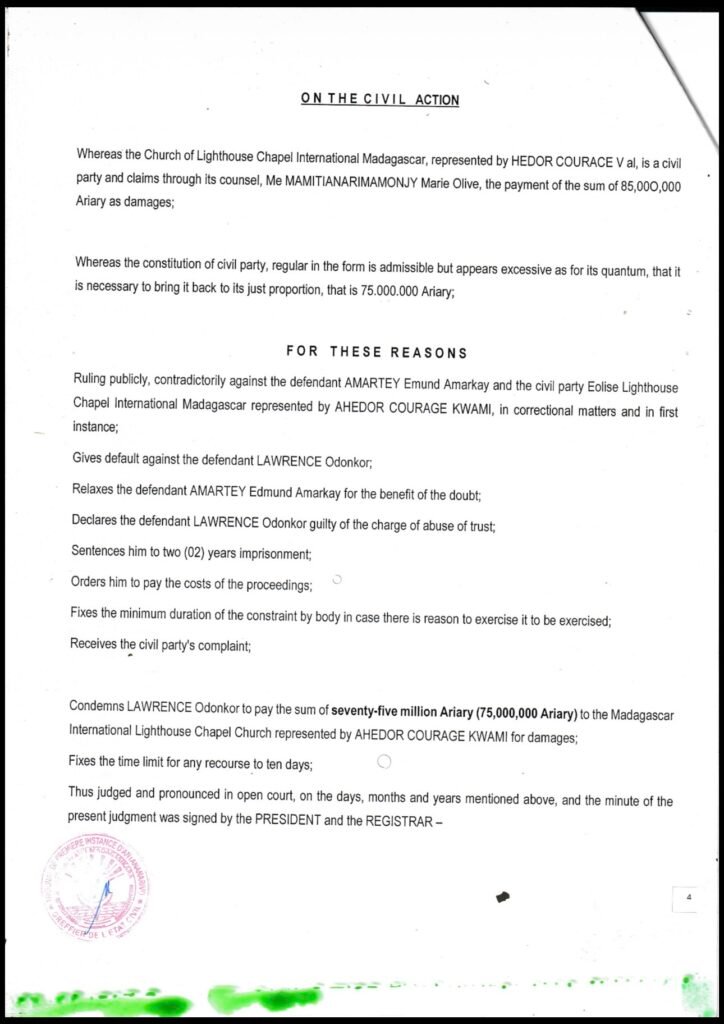 Is former pastor of Lighthouse Chapel Larry Odonkor now an convicted criminal after 2 year sentence declared?
